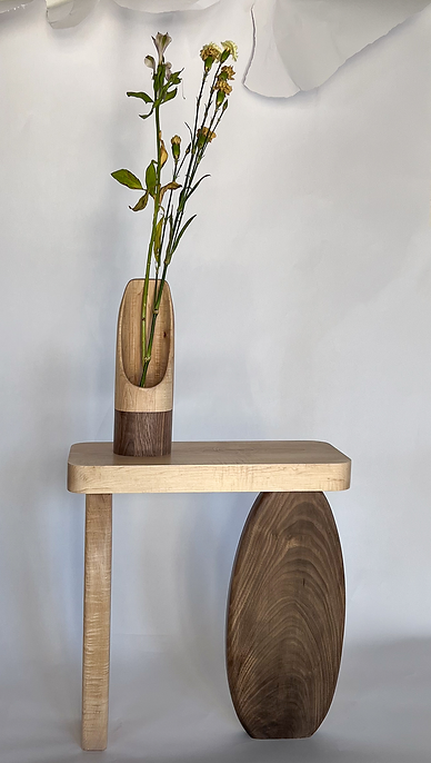 Toval is a 3 piece collection of walnut and maple that is apart of a form family. They share oval shaped curves and tapered ends.